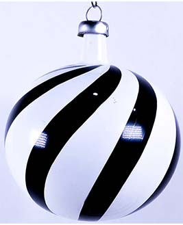 Esfera de cristal, aplicación en color blanco, decorado con tinta en los colores rojo y negro, y con diamantina en color Turquesa, Uva y Palo de Rosa.