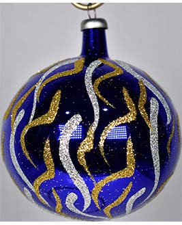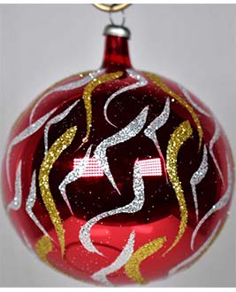 Esfera de cristal número 5, acabado en espejo y con una aplicación de color y decorado con diamantina.