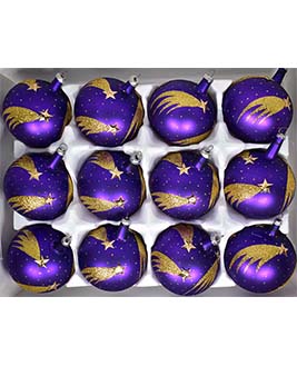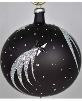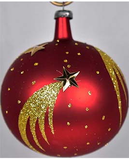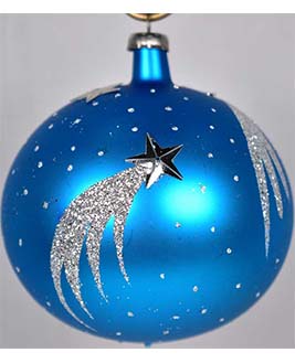 Esfera de cristal número 5, acabado mate y con una aplicación de color, decorado con cometas.