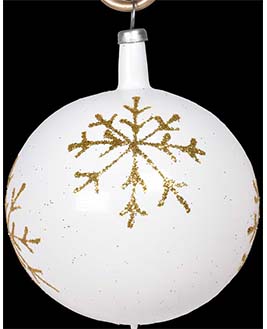 Esfera de cristal número 3, acabado en color blanco y en espejo con una aplicación de color y decorado con diamantina.