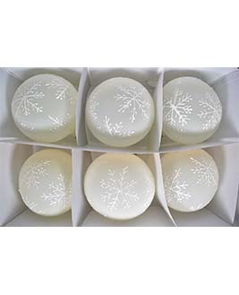 Esfera de cristal número 10, (10 cm de diámetro, tamaño aproximado de una toronja), acabado en mate color nieve, con una aplicación de color, decorado artesanalmente.