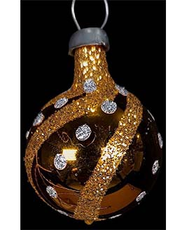 Esfera de cristal con acabado de espejo, con aplicación de color y decorado artesanalmente con diamantina.