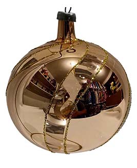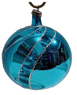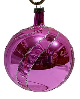 Esfera de cristal con acabado espejo, con una aplicación de color con bandas en espiral transparentes delineado con diamantina.