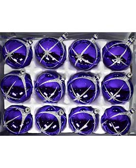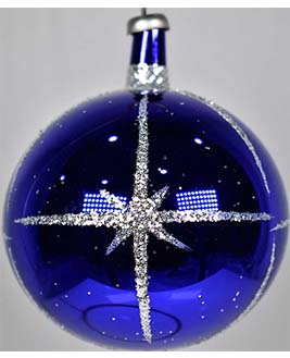 Esfera de cristal número 5, acabado en espejo y con una aplicación de color y decorado con estrellas de belén.