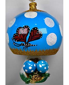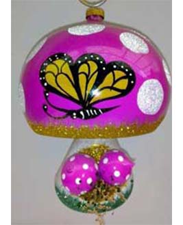 Esfera de cristal en forma de un hongo, decorado artesanalmete, en color Rosa, Uva, Rojo y Turquesa.