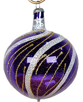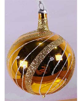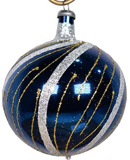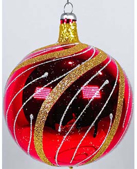 Esfera de cristal número 3, acabado en espejo, con una aplicación de color y decorado con diamantina en forma de lluvia.