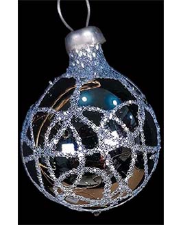 Esfera de cristal con acabado de espejo, con aplicación de color y decorado artesanalmente con diamantina.