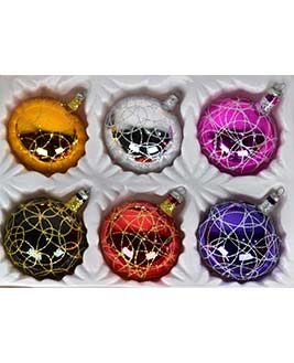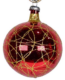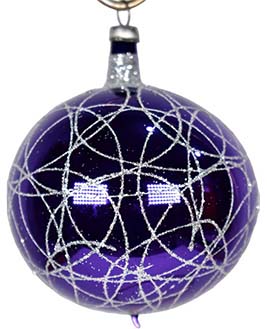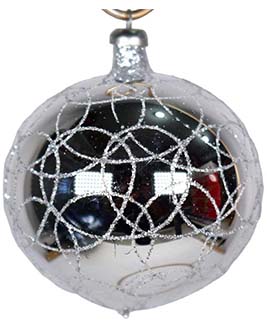 Esfera de cristal número 3, acabado en espejo con una aplicación de color y decorado con diamantina en forma de madeja.
