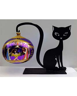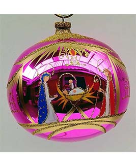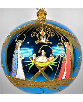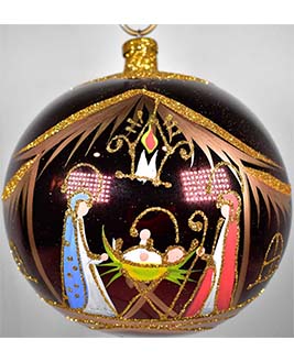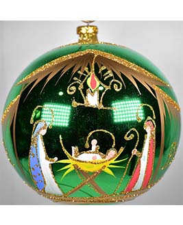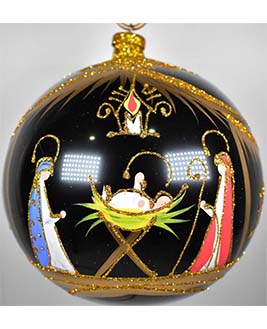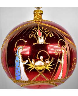 Esfera de cristal número 12, (15 cm de diámetro, tamaño aproximado de un melón), acabado en espejo con una aplicación de color, decorado artesanalmente.