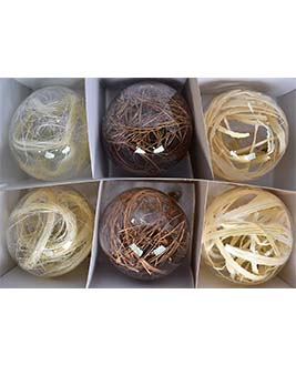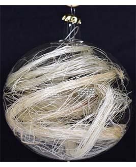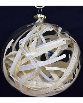 Esfera de cristal número 10, (10 cm de diámetro, tamaño aproximado de una toronja), acabado transparente, decorado en su interior con Totomoxtle, Ixtle y Azahal artesanalmente.
