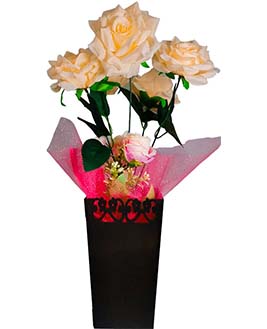 Arreglos de Rosas Artificiales de excelente calidad, de diseños únicos, en diferentes tonos, con una altura aproximadamente de 46 cm de altura y de ancho; 17 cm.