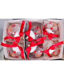 Esfera de cristal número 10, (10 cm de diámetro, tamaño aproximado de una toronja), acabado en transparente, decorado artesanalmente, adicionando moño y nieve de unicel en su interior.