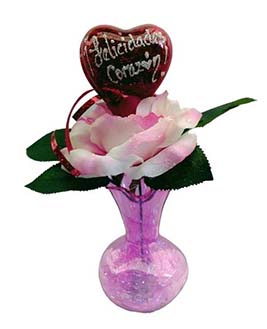 FLORERO CON CORAZÓN Y ROSA