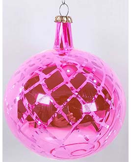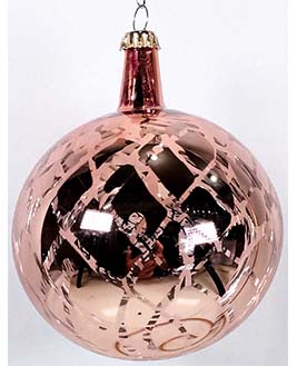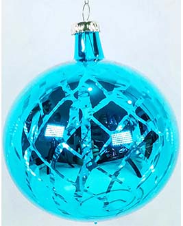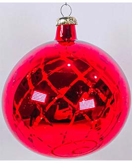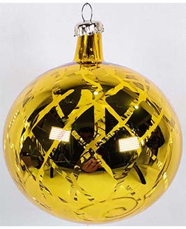 Esfera de cristal con acabado en espejo, con una aplicación de color y decoración de líneas traslúcidas.